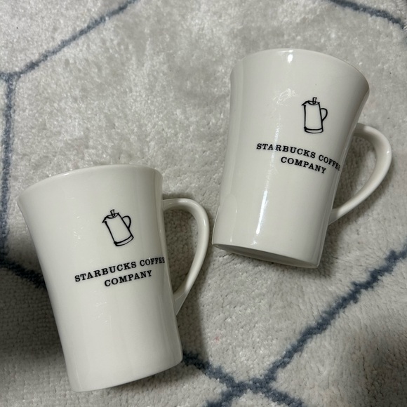 Timeless Starbucks Coffee Company ceramic mugs in a matching set of two. Features the minimalist black logo and classic tall café shape—perfect for everyday coffee, tea, or hot chocolate.