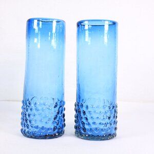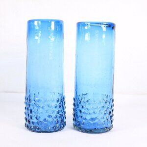 Enhance your collection with these two stunning Limited Edition Starbucks Ocean Blue hand blown hobnail tumblers. These glasses are perfect for cold drinks (COLD DRINKS ONLY) and are 7 inches tall. These tumblers are fully hand made - hand blown and hand etched and with clear differences between the 2. With small marks of age and use. You will receive both glasses.