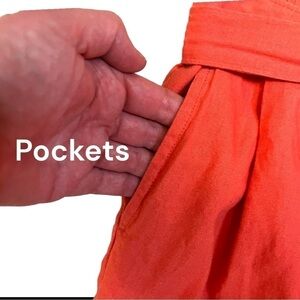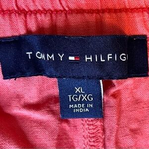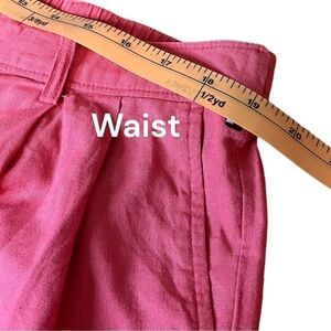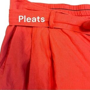 1. Tommy Hilfiger 15” coral shorts have pleats, belt loops, soft belt, and two side pockets. Made in a linen and viscose blend with a zip and button closure.