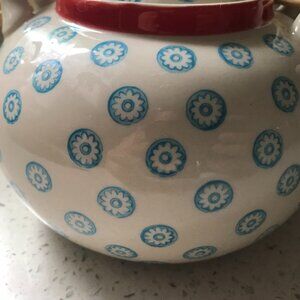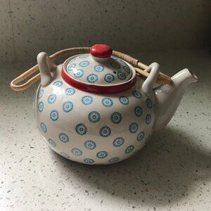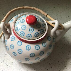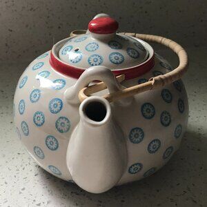 White Bloomingville teapot w/ blue flowers