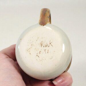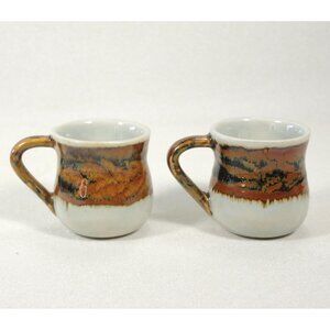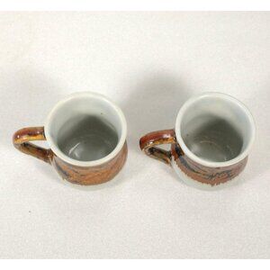 They are approximately 2 1/2 inches tall and 2 1/2 inches wide, not counting the handles. They have a very clean interior with no staining. There are no chips, cracks, or crazing. There may be the odd glaze pop or miss, or surface scratch. Please see all the photos.
