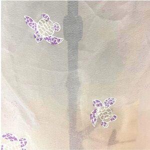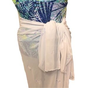 2. Versatile white chiffon wrap cover up with cute little lavender sea turtle print that picks up the colour in the suit. You can tie it around your waist, your chest or your neck for lots of coverage options.
