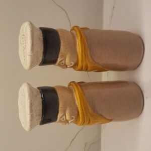 Set of 2 Unbranded Salt and Pepper Shaker Chefs 7.75"h x 3" diam Ceramic
