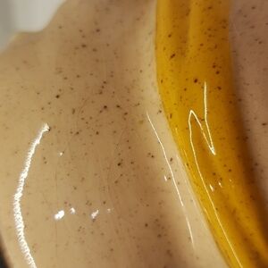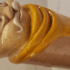 This lovely set of 2 chef salt and pepper shakers are in good condition with some wear. Chef hats have some chips on edges, a chip on Pepper yellow napkin, some crazing throughout. See photos.