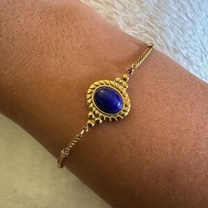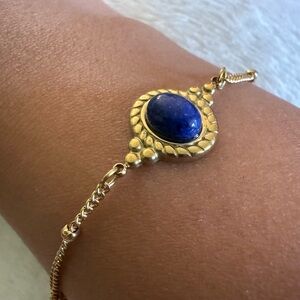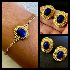 Add this gorgeous set of stone bracelet + earrings with royal blue (midnight ink navy) cabochons to your jewelry collection💙✨ Gives off beautiful Egyptian revival vibes.