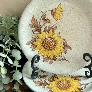 The cute sunflower pattern on these medium-sized speckled luncheon plates will brighten up any kitchen or china collection! Featuring the "Sundowner" pattern, these ironstone plates were made in England by Wood & Sons circa 1970s.