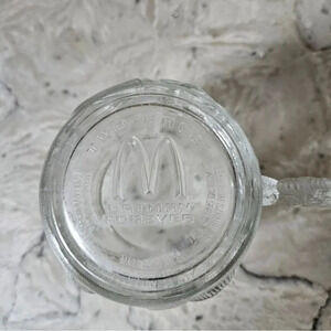 This glass coffee cup measures 3-1/8" in height by 3-1/8" in diameter across the top opening and 2-1/2" in diameter across the bottom base. This glass coffee cup is in good condition with no chips, cracks, or breaks.
