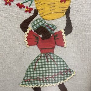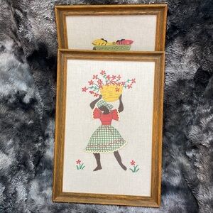 Set of 2 Vintage 70s Crewel Embroidered Folk Art Framed