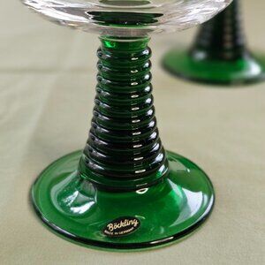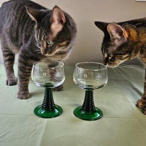 Set of 2 Vintage Bockling Made in Germany Roemer Plain Glasses with Green Foot