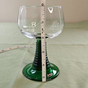 Unique Wine Glass with Dark green twisted foot, set of 2 glasses. These are in excellent pre-owned condition with no cracks/chips. Come from smoke free and pet friendly house. They will be packaged securely for shipping.