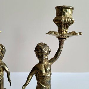 Set of 2 Vintage Brass Cherubs Candleholders Candle Sticks Holders.