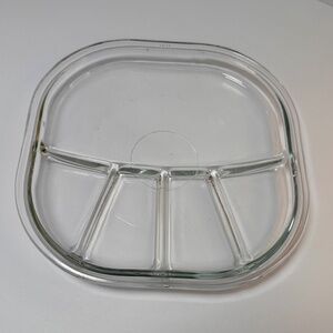 These sturdy mid-century serving plates feature five compartments and thick pressed-glass construction โ ideal for hosting, display, or everyday use.