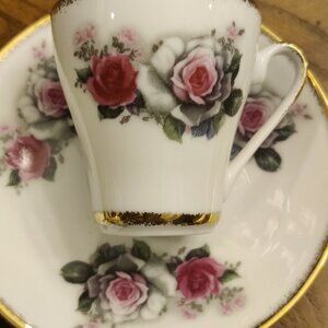 Vintage Demi Tasse Espresso Cup Set, gold gilded set of 2.