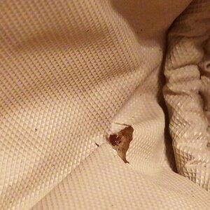 The flat bag is perfectly usable, but this vintage piece is showing some age. The piping has lost some of its finish, the bag is not the cleanest (I'm not sure if/how it can be cleaned), and there is a small tear in the lining (does not go through to the outside of the bag). It is about 6.5" long by 4" high.  It has also been puffed out with paper for the photos. Please see all photos of both bags before purchasing.