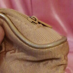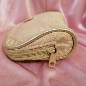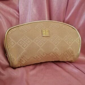 This listing is for two small vintage Givenchy bags. They are from the Givenchy perfume collection and each has a tag inside that says "Made Expressly for Organza de Givenchy." Both bags are done in a gold brocade Givenchy logo fabric with gold piping.They are lined in a similar coloured vinyl type fabric. Both have zipper closures, and both zips work perfectly.