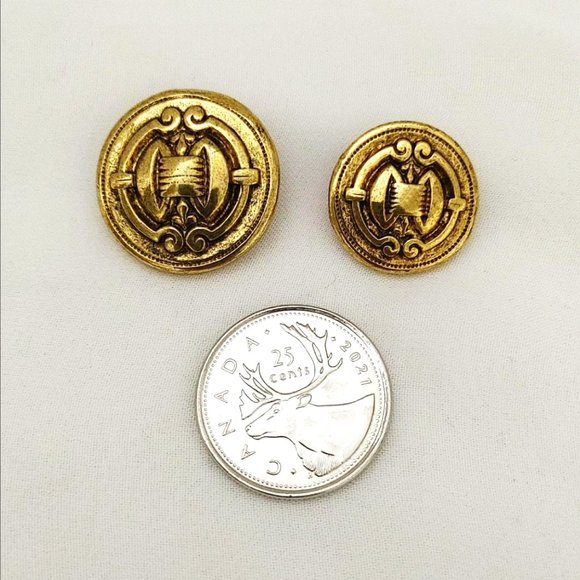 Set of 2 Vintage Shield-like Metal Buttons Metal Shank Gold-tone Rounded 18.6mm