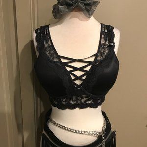 2. La Senza’s ultra-sexy halter bra has beautiful lace detailing at the back with a fastener at the neck. The plunge front has criss-cross ribbons and lace straps. This is the perfect bra to peek out from your clothes, especially for backless dresses. Lightly padded, 34D, New with tags, retail $40