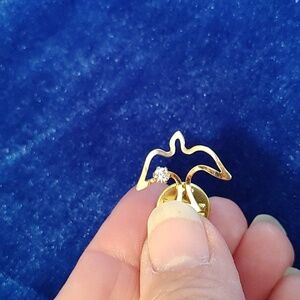 - second pin is very lightweight gold tone bird with cubic zirconia stone