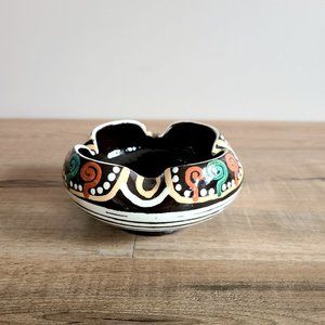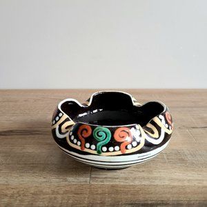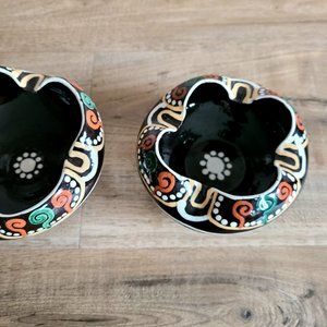 Set of 2 hand made hand painted ceramic ashtrays with bright multicolor design.