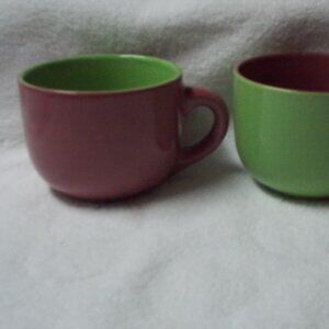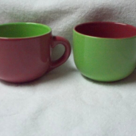 In EUC, never used, approx 5" x 4" cute jumbo mugs in matching colours. Comfort handles and good quality ceramic.
