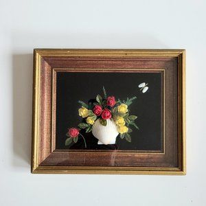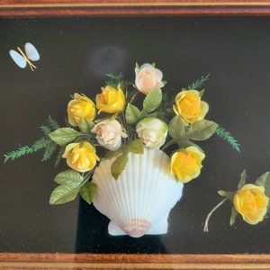 Set of 2 vintage 3 D floral design picture with shells.