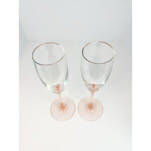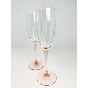 Set of 2 vintage 80s pink stem champagne flutes by Luminarc