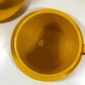 Set of 2 vintage Melamine teacups with saucers in sunshine yellow