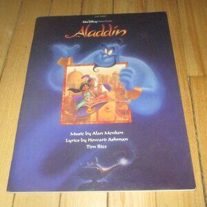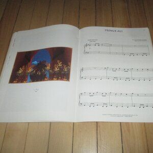 This is a set of 3 Disney Movie Piano Vocal / Chord Music Books including 3 books from Hal Leonard from: Frozen, Lion King, and Aladdin. These are all large paperback song books. They are in pretty good shape for their age. There is some minor wear on the including creasing and folding on some pages and cover and they have some sticker scum on the covers too. They are overall clean looking books in great shape. They are sold as is together,