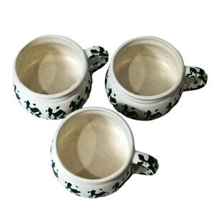 Set of 3 Green & White Country Kitchen Soup Mugs/Bowls, Unbranded, Spongeware??