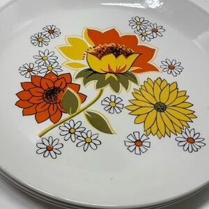 Set of 3 Johnson Bros Ironstone dinner plates in Pasadena pattern. Made in England. These gorgeously retro plates are from the 60s, featuring earth-toned florals in yellow and burnt orange.