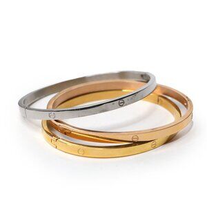 Set of 3 Metal Bangle Bracelets Trio Stackable Gold Silver Rose Gold Copper Tone