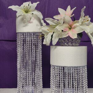 What you get A Very Sturdy Acrylic Cake Stand Draped in Crystals and loaded with Teardrop Ends