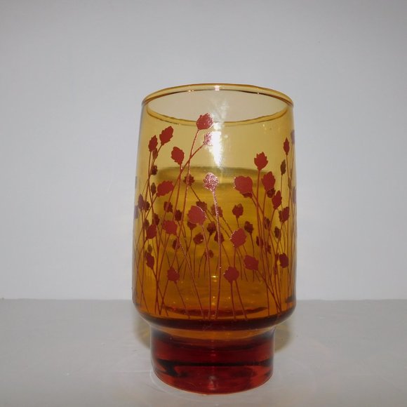 This set of 3 Vintage 70s / 80s Amber Floral 4.75" tall Juice Glasses Tumblers are in great clean condition. Got that totally retro look - relive your childhood. Each glass measures 4.75" tall and 2.75" in diameter at the opening.