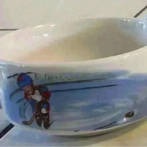 The bowls measure approximately 2 inches high with a diameter of about 4 1/2 inches. These mugs are in excellent preowned condition (no chips or marks) and are perfect for soup.