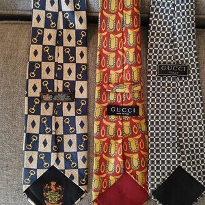 Set of 3 Vintage Gucci Mens Silk Ties. Made in Italy. Creative designs. Broader ends.