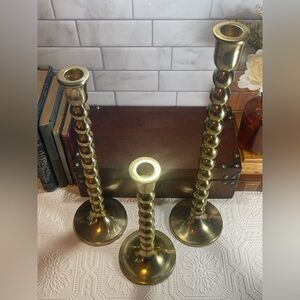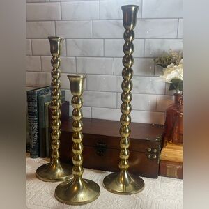 Set of 3 Vintage Knobbed Circle Brass Candlestick Holders