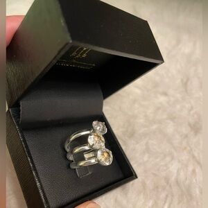 Set of 3 silver crystal rings for layering