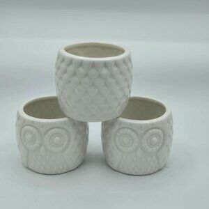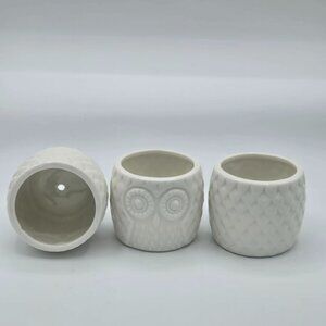 Set of 3 small adorable white ceramic owl planter Succulent Pots WHIMSICAL!