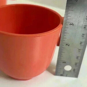 Set of 4 1970 Vanguard by Maplex Melamine coffee or tea mugs in pinky-orange