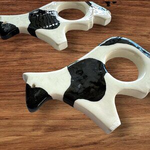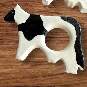 Set of 4 Ceramic Cow Napkin Rings Holders Black and White Farmhouse Decor