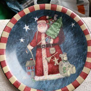 Add festive cheer to your dining table with this set of 4 Certified International Susan Winget Santa Claus salad plates. Crafted from high-quality stoneware, ceramic and porcelain, these plates feature a joyful multicolor design that is perfect for the holiday season. Made in China, these plates are a great addition to any Christmas collectibles you may have. Use them to serve your favorite holiday meals or display them as decorative plates in your home. These plates are perfect for any occasion and are sure to bring a smile to your face. Add them to your collection of holiday and seasonal collectibles today!