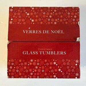 Celebrate the holidays with this set of 4 charming Christmas glass tumblers. Each features an adorable snowman design with a red hat and scarf, paired with an elegant gold rim that adds a festive touch. Ideal for serving drinks at holiday gatherings or as a cheerful addition to your seasonal table décor. These tumblers are perfect for eggnog, mulled cider, or any holiday beverage.