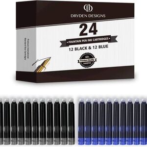 4 Dryden Designs Fountain Caligraphy Pen - Medium Nib 0.5mm | Includes 24 Ink Cartridges - 12 Black 12 Blue and Ink Refill Converter | Calligraphy Pen, Smooth Look – 2 Deep Blue & 2 Blue
