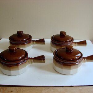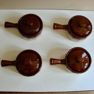 Set of 4 French Onion Soup Bean Chili Bowls Crocks With Handles Lids