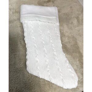 This white cable knit Christmas stocking features a luxurious fleece cuff, adding a touch of elegance to your holiday décor. The stocking measures 21 inches in length, providing ample space for gifts and treats. Its classic design makes it a tasteful addition to any festive setting.