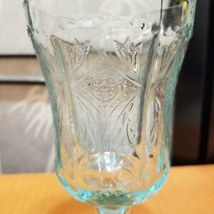 Set of 4 Indiana Glass Madrid Recollection Teal Water Goblets Drinking Glasses
