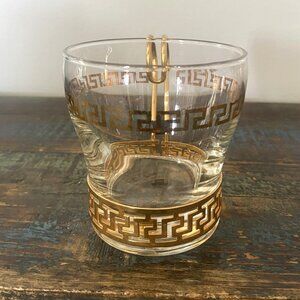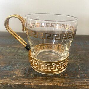Set of 4 Vintage Libbey Glass Mugs with Gold Greek Key Design and Metal Handle