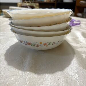 Elegant floral dinnerware set with a charming design. Perfect for enhancing your dining experience. Some minor chips and signs of wear.
