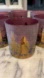 Enhance your home decor with this elegant set of 6 frosted purple and shiny gold forest -themed glasses. Featuring a beautiful purple hue with gold accents, these glasses add a touch of nature-inspired charm to any setting. Includes 6 Tealight candles. Emits a soft lovely glow when the candles are lit inside. Measures 3” high and 2.75” across.