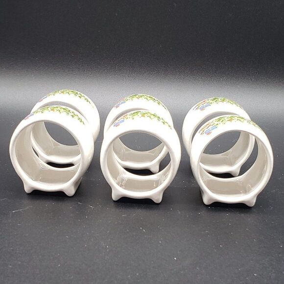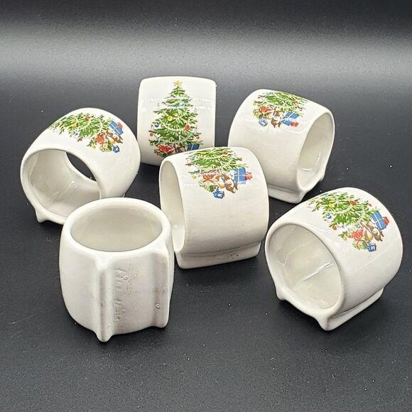 Set of 6 Signed 1984 Traditional Christmas Tree Ceramic Napkin Holders